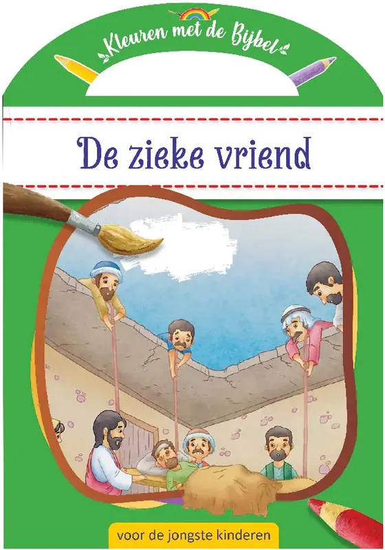 Dit leuke boek bevat het Bijbelverhaal van de zieke vriend en zijn vier vrienden. Het verhaal wordt in eenvoudige taal verteld, waardoor de jongste kinderen het goed kunnen begrijpen. En de bijna paginagrote tekeningen erbij kunnen zij zelf inkleuren. Een mooie en aansprekende